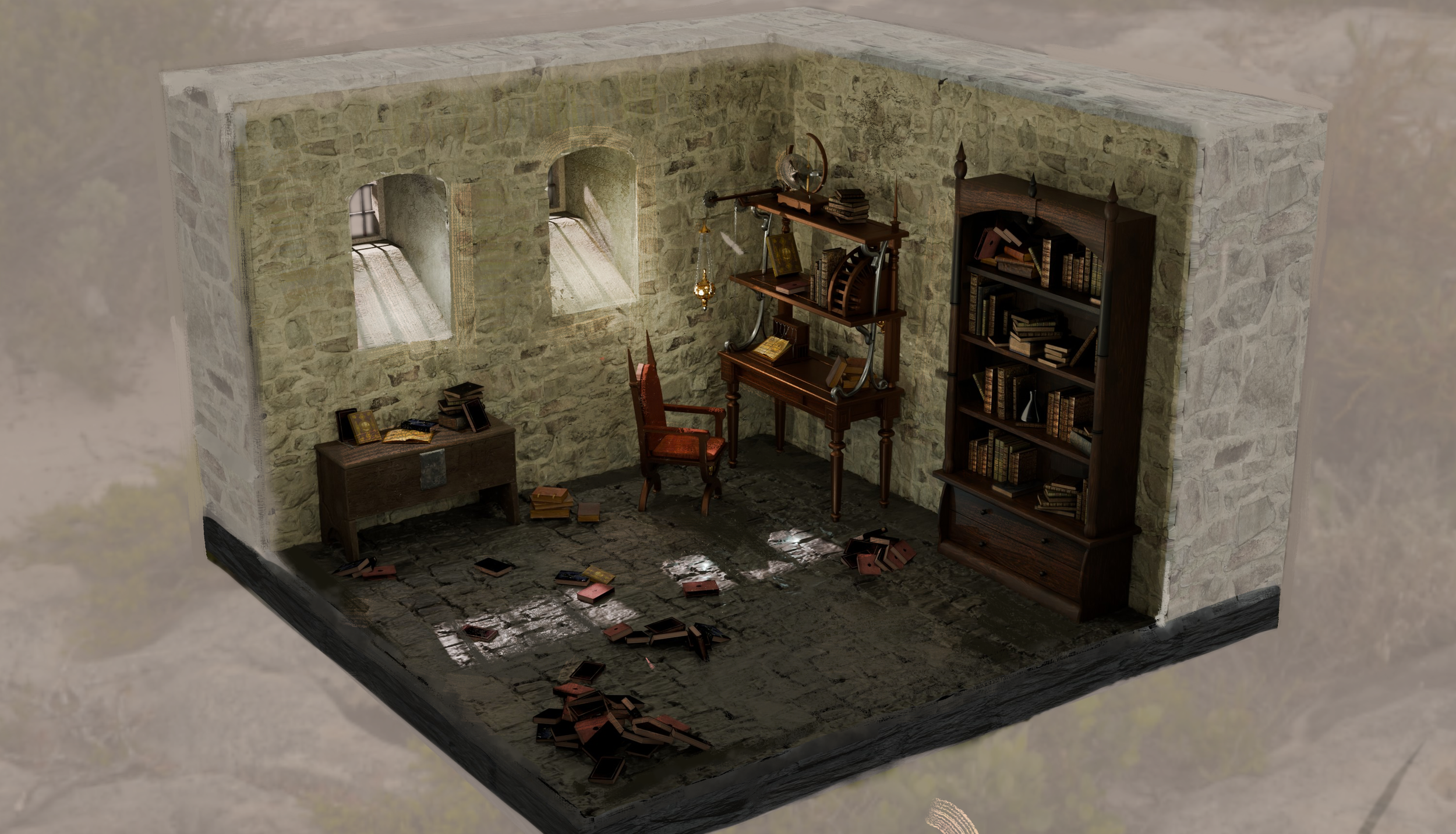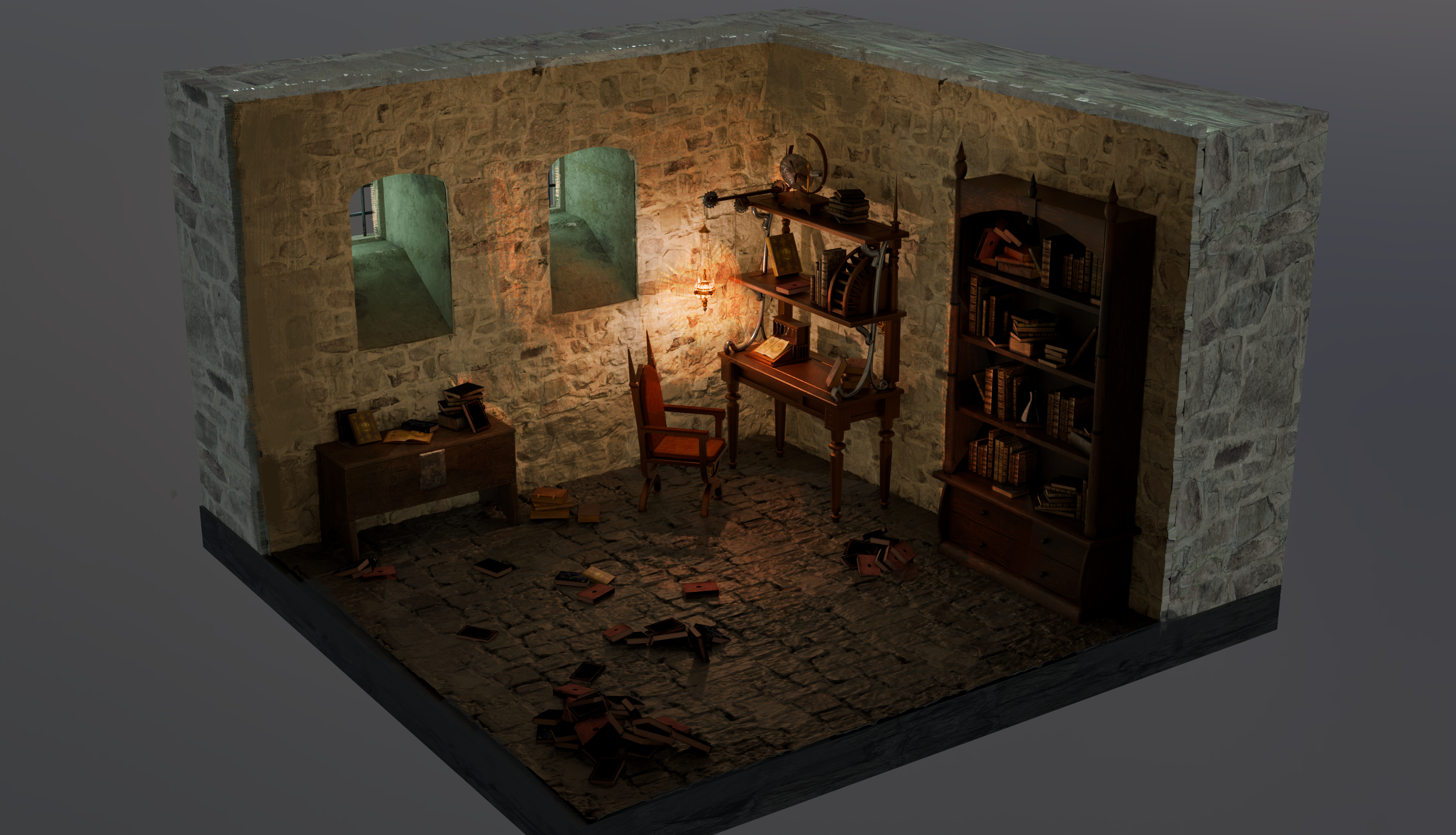 medieval room rendered in night and day